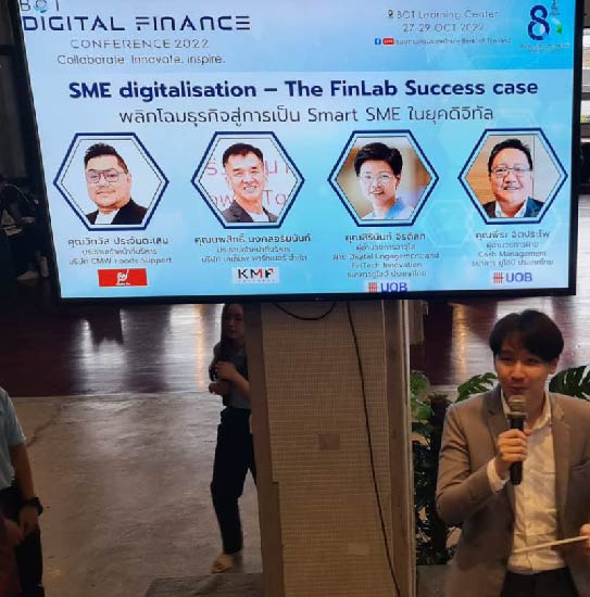 กรรมการผู้จัดการใหญ่ บริษัท เคเอ็มพี คอร์ปอเรชัน จำกัด (มหาชน) ได้เข้าร่วมงาน BOT Digital Finance Conference 2022 เมื่อวันที่ 27 ตุลาคม 2565 ร่วมกับ ธนาคารยูโอบีจำกัดแห่งประเทศไทย โดยได้ร่วมแชร์แนวคิด และความสำเร็จการปรับองค์กรสู่ดิจิทัลของ SME สู่ Smart SME ในยุคดิจิทัล จากโครงการ Smart Business Transformation Programme